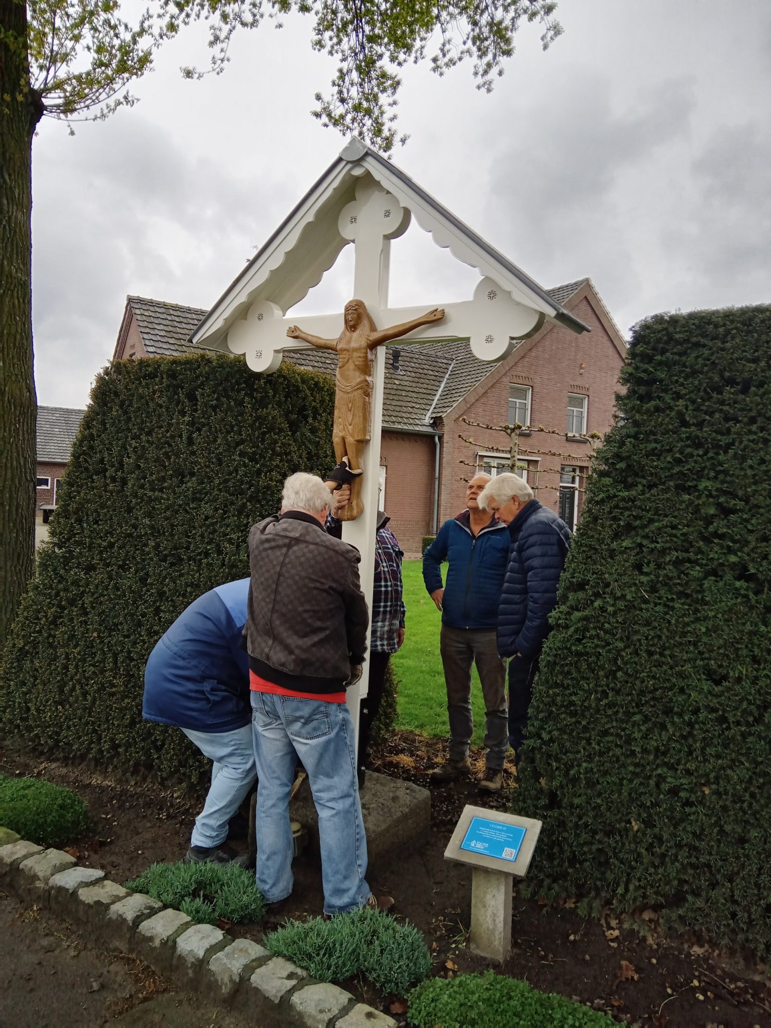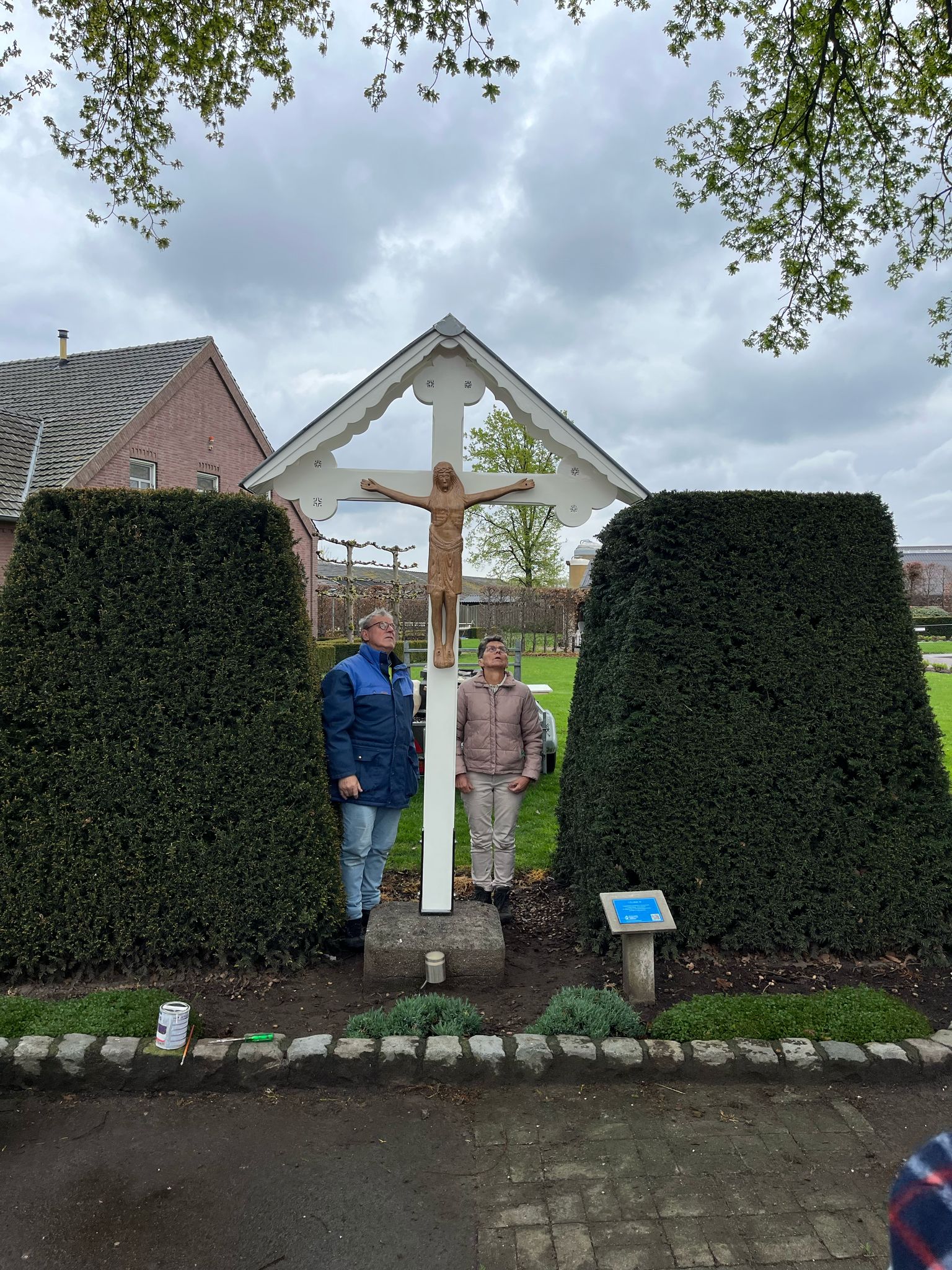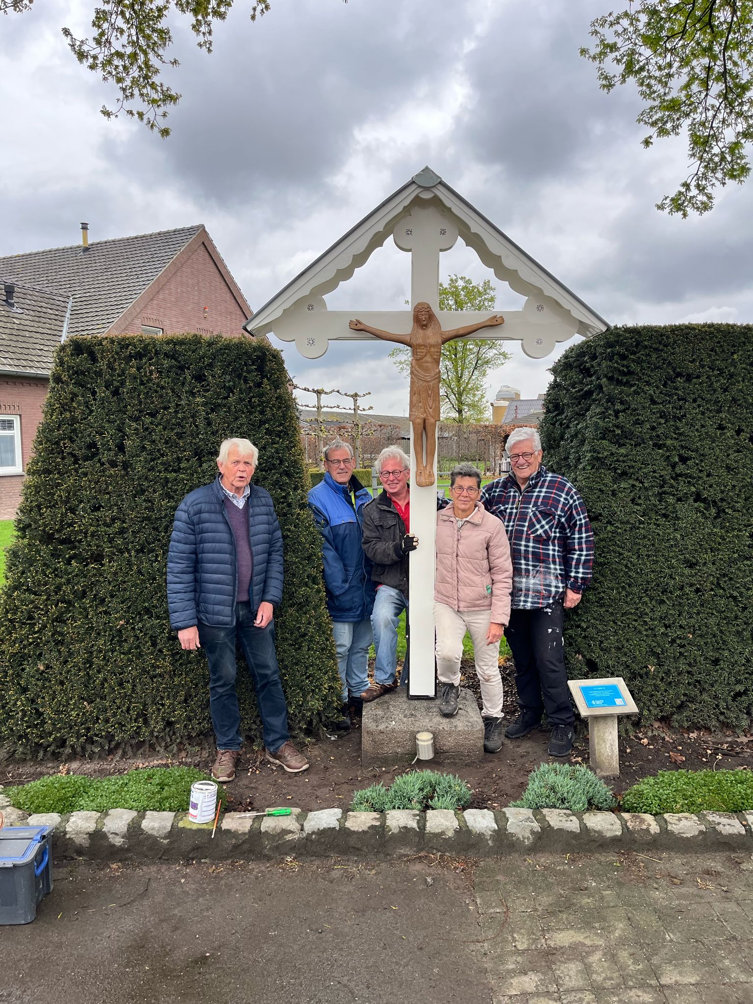 Van het originele corpus heeft de stichting een kopie exemplaar gemaakt van kunststof en is nu op het kruis gehangen. Daarnaast heeft de kapconstructie van het kruis ook een restauratiebeurt gehad. Het geheel in goed in de verf gezet zodat het er weer jaren tegen kan.